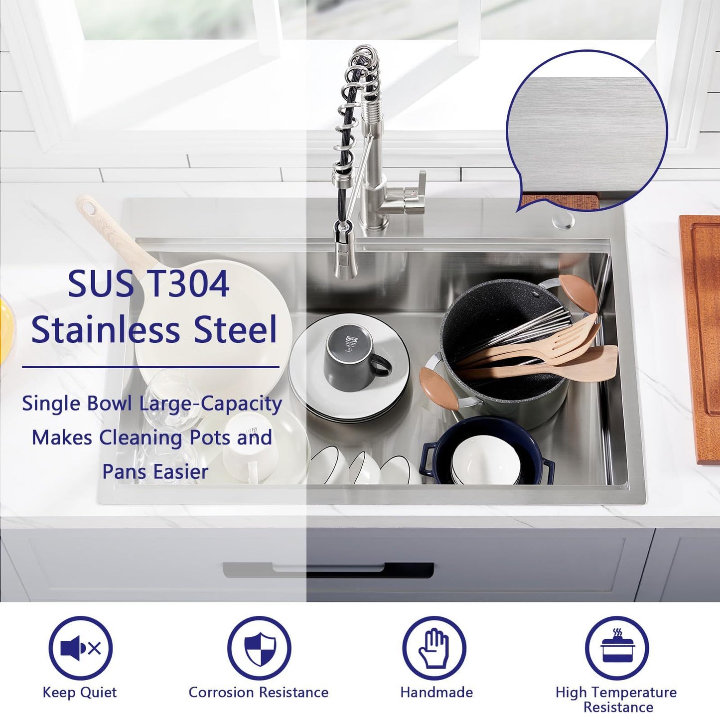 - High Quality Stainless Steel: the drop in stainless steel sink is made of top grade 304 thick panel stainless steel for superior dent, scratch and rust resistance. You can match it with your stainless steel appliances to tie your whole kitchen together