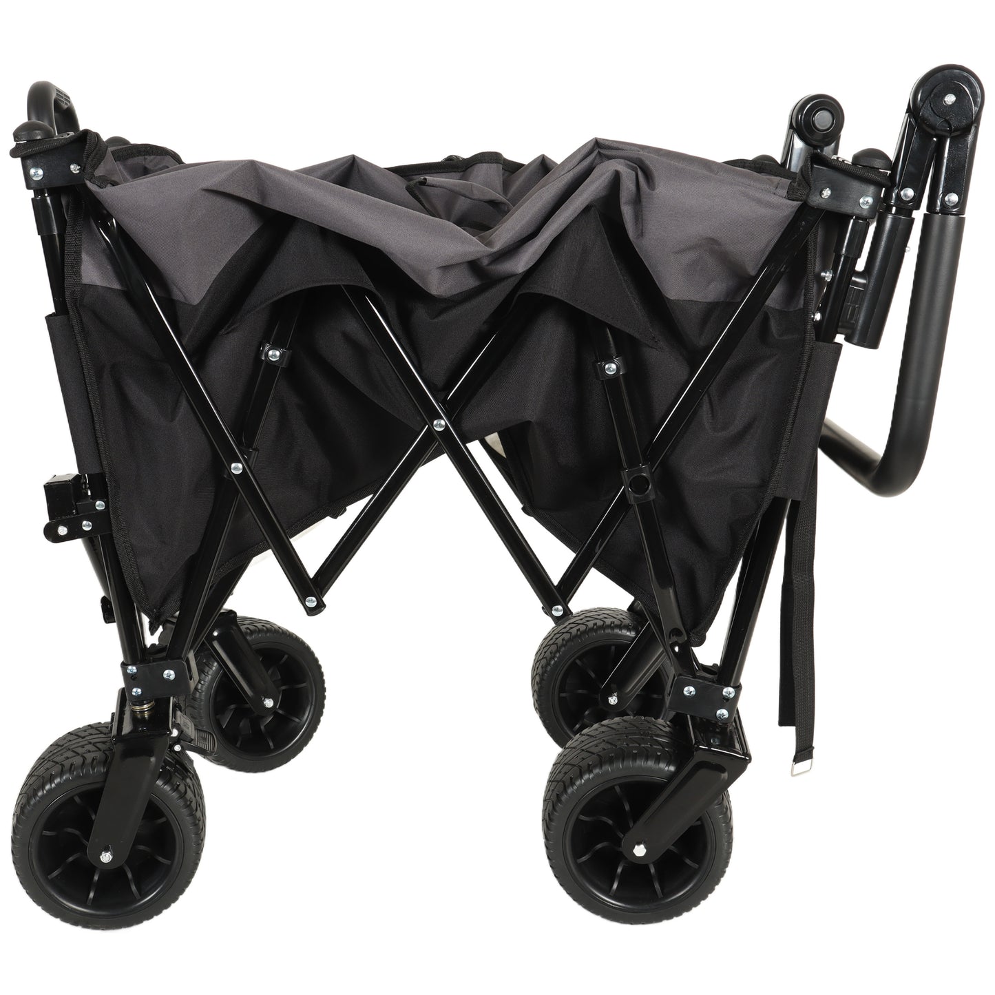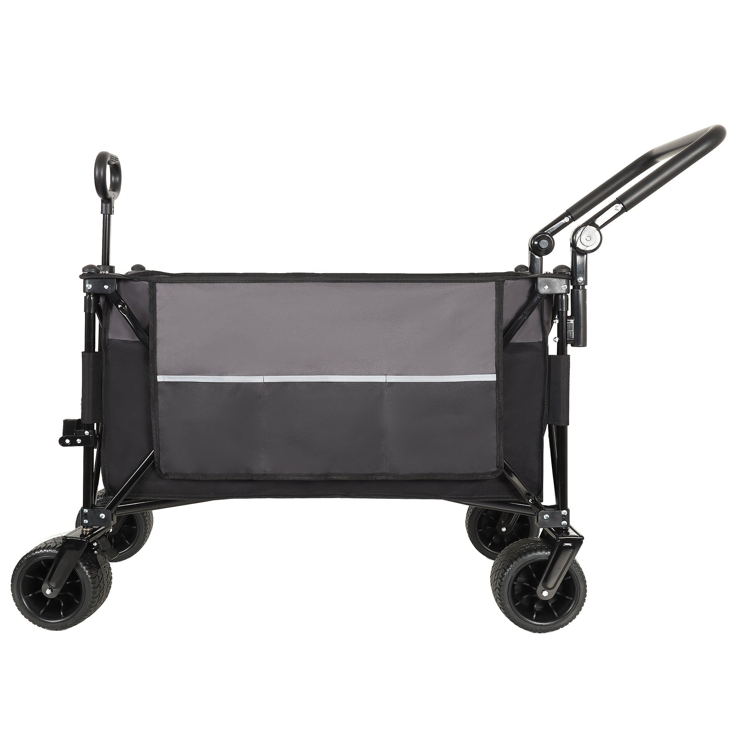 Multi-Functional Push-Pull Folding Wagon Cart with Rotating Handle & 360° All-Terrain Wheels – Heavy-Duty, Adjustable Design, Large Capacity for Transport, Groceries, and Outdoor Use, Black- Gray