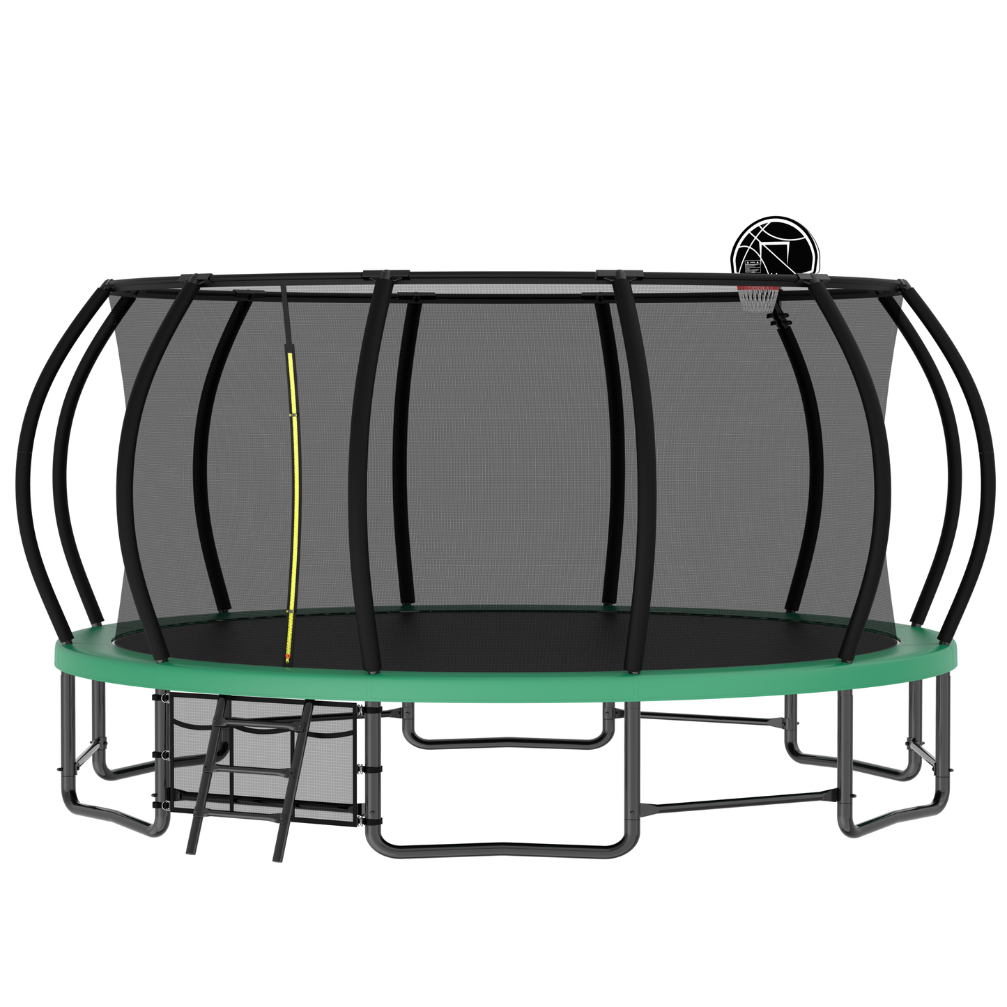 16FT Outdoor Trampoline for Kids and Adults, Pumpkin Trampolines with Curved Poles,Heavy Duty Trampoline Anti-Rust Coating ASTM Approval