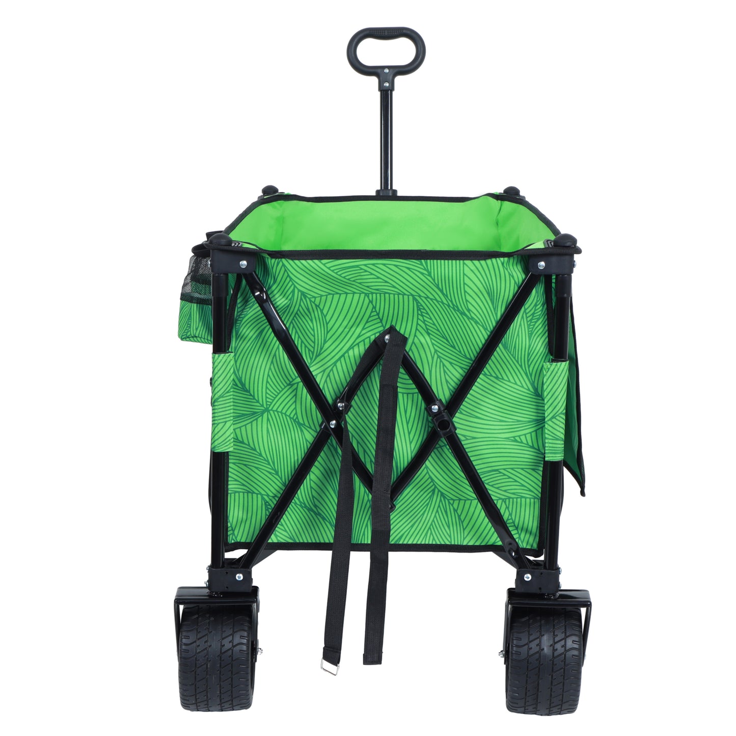 Heavy-Duty 480lbs Folding Wagon Cart with Bonus Picnic Mat - All-Terrain Beach Wheels, Drink Holders, Brakes & Side Pocket for Camping, Garden, Sports, green line