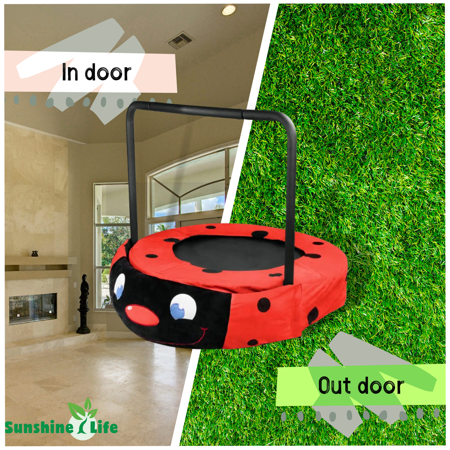 Introducing our adorable ladybug-shaped trampoline, perfect for indoor and outdoor play! With a height of 8in and a diameter of 36in, this trampoline is just the right size for young children to bounce and play safely. The trampoline also features a sturdy handlebar that kids can hold onto for added stability and balance.