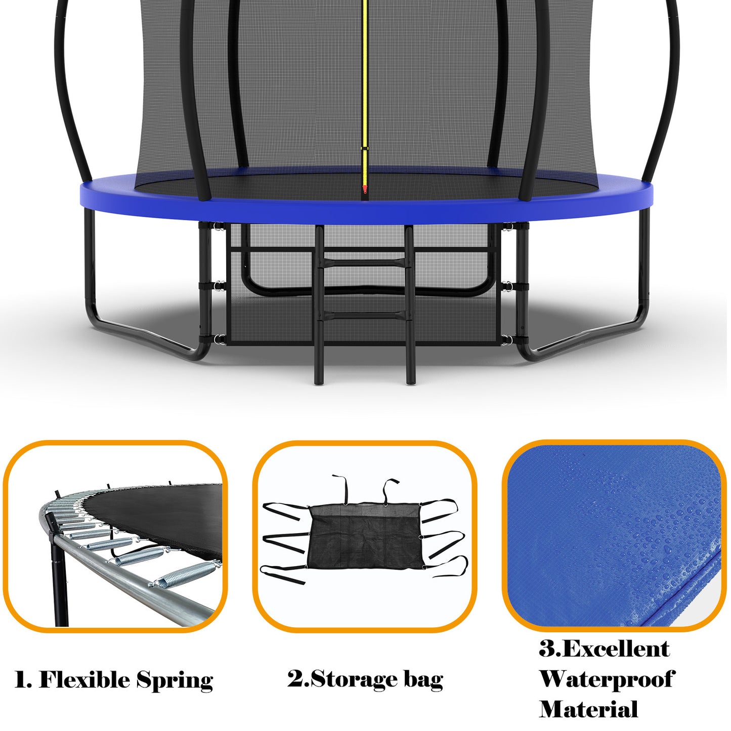 - Novel style & complete certification: pumpkin style 10FT big trampoline, the appearance of more three-dimensional sense, the net pole and the net space is large, not easy to collide. The product has ASTM F381-16 & F2225-15, CPC and CPSIA certification testing.