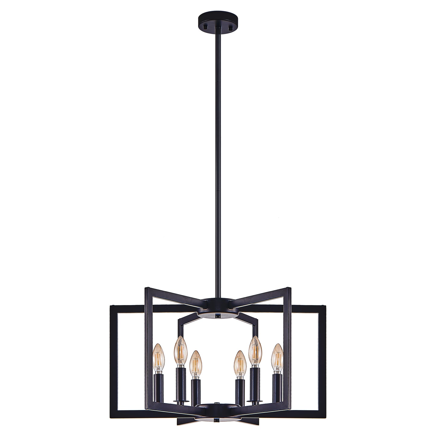 21' Modern Black Geometric 6-Light Chandelier – Industrial Metal Pendant Light Fixture