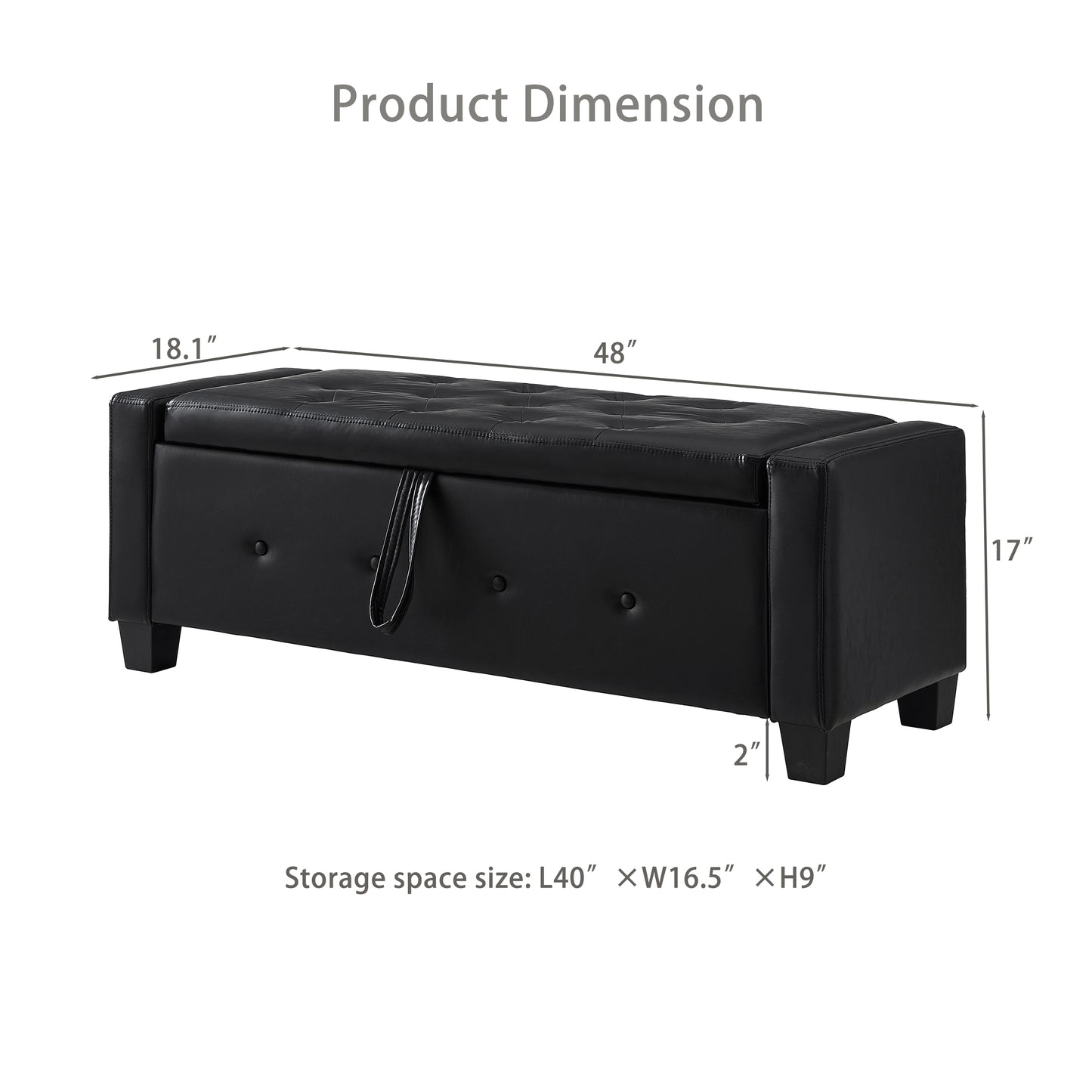 48' Ottoman Bench with Storage, Bench for Bedroom,Living Room,Hallway, Upholstered Tufted Faux Leather PU Ottoman Black