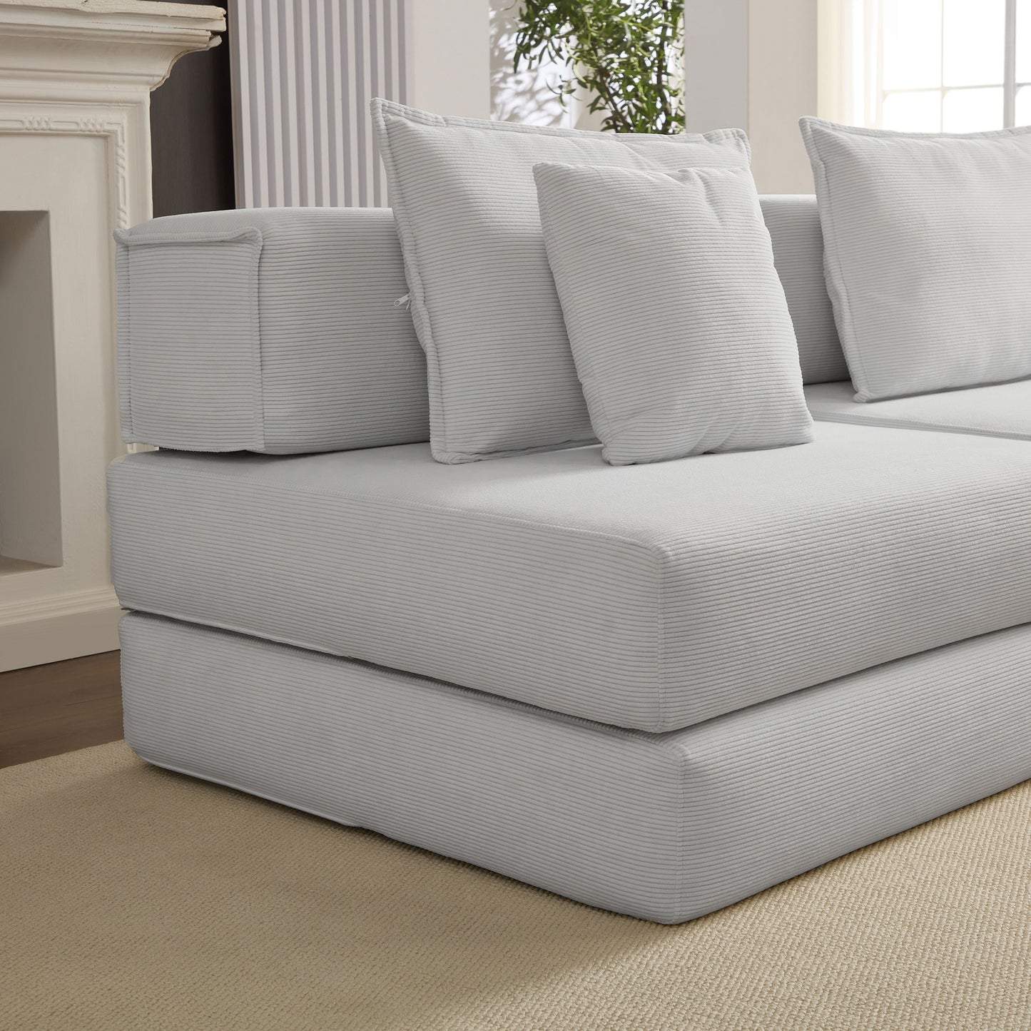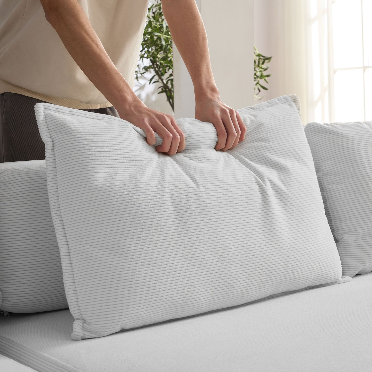 - Premium Comfort: The sofa is decorated with high-quality corduroy fabric that you can feel the smoothness of touch, whether you're sitting down and relaxing or lying down and taking a nap, this convertible sofa bed features high-density foam that effectively alleviates pressure while providing robust support. The deep seat sofa will provide you with an unbelievably comfortable experience. The accompanying soft pillows enhance your lounging experience, ensuring relaxation like never before.