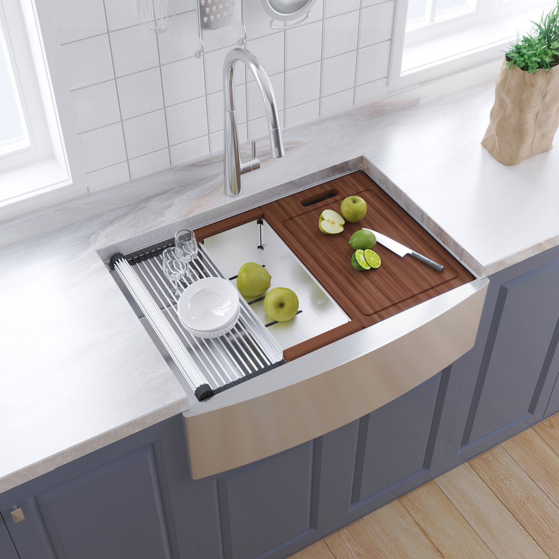 33-inch Farmhouse Single Bowl Stainless Steel Workstation Kitchen Sink 18 Gauge