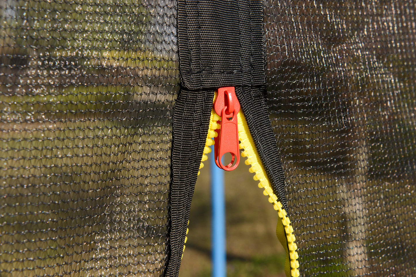 - 12FT TRAMPOLINE -- Jump mat is made of UV-protected polypropylene, woven to prevent slipping. Extra thick vinyl-coated spring pad is fade resistant. The mat is weatherproofed and so the trampoline can be left outdoors. The safety pads are here to prevent any injury due to touching the springs and impacting hard areas.
