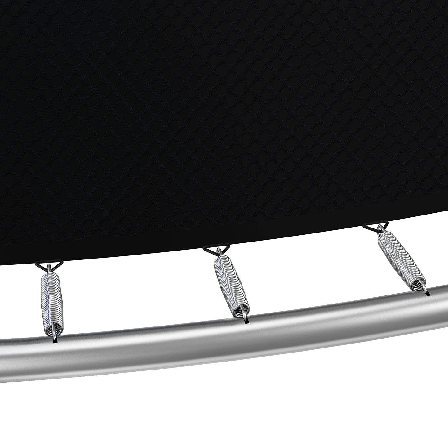 Safeseal System - This 14FT trampoline with enclosures feature a 360-degree safety net that is securely attached to the jumping mat all the way around, reducing the risk of an arm or leg falling through. A full enclosure with a zipper door surely lends you peace in mind. The rust-resistant steel 4-step ladder helps you get onto your trampoline quickly and safely. There's a backboard, You can play basketball in it. Premium Bouncing Experience - High-strength trampoline mat woven together that able to handle constant flexing, making it durable and soft on your feet. 72 galvanized springs evenly stretched around the mat ensure a smooth and responsive bounce. Built with Durability - Heavy gauge galvanized steel frame forms 6 W-shaped legs provide stable base for the jumping zone. The joins are press-fitted onto each frame piece to reduce frame noise and movement between sections and ultimately, reduces overall wear and tear. Fun Features - Jumping is more fun by adding a basketball goal, which will keep your kids busy all day. This trampoline with swing and plastic slides , for children to play on Assembly Details - We have designed this trampoline to be as easy as possible to assemble, we recommend two or more people for assembly. Quick tip: view the assembly sequence to reduce the construction time. Trampoline Weight Capacity: 260 lbs. Slide weight Capacity:88lbs ****Trampoline jumping pad (pp material) that is wear-resistant. The trampoline will not fade when it is used outdoors (in order to keep the trampoline's new appearance when it is not in use, it is best to put on a protective cover) ****Add a triangle net around the backboard to keep the ball from flying off the trampoline