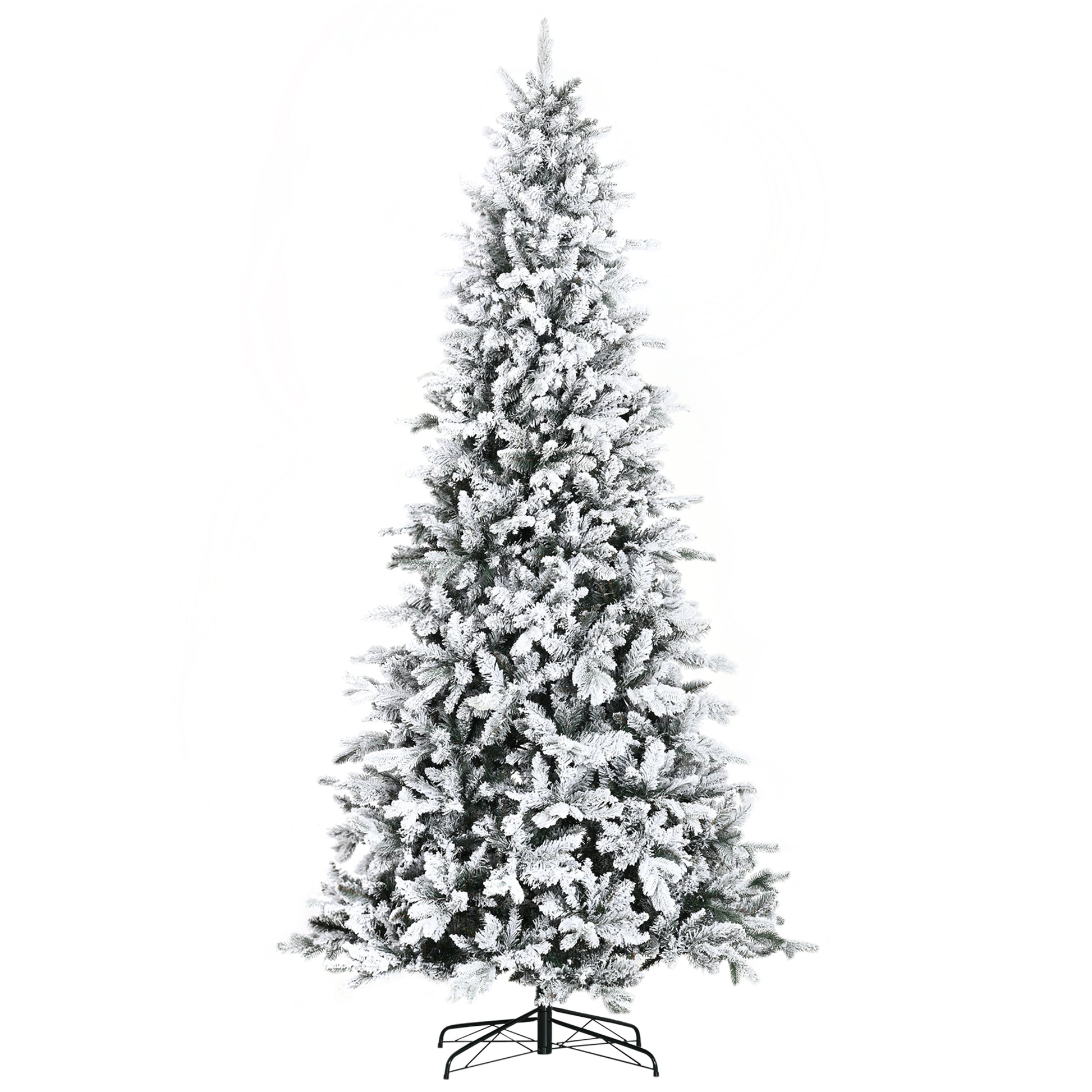 HOMCOM 9 Foot Pine Snow Flocked Artificial Christmas Tree with 616 Realistic Cedar Branches, Auto Open, Home Holiday Decoration, Green