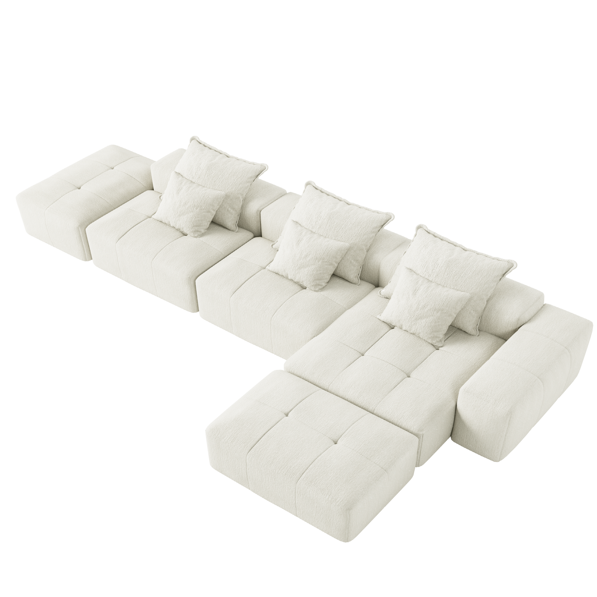 Create a cozy and inviting space with this modern oversized upholstered sectional sofa couch set, designed for residential use and ideal for family rooms or open living areas. Upholstered in sparkling chenille fabric and available in grey, beige, black, or blue, this sectional brings both comfort and contemporary flair to your home. The foam and pocket spring fill in the seat and frame offers lasting support, while the foam back cushions provide a soft and relaxing feel. Featuring square arms and six included pillows, this sofa blends structure with softness for a balanced look and feel. No assembly is required, and the product arrives in two cartons for easier handling. To keep it looking fresh, lightly brush or vacuum regularly and spot clean with a mild water-based solvent as needed. A professional cleaning service is recommended for more heavily soiled areas. Whether gathering with loved ones or relaxing after a long day, this sectional delivers comfort, style, and function.